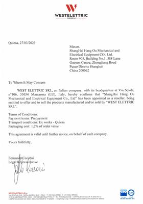 2023年WESTELETTRIC工廠授權上海航歐中國區代理WESTELETTRIC照明燈經銷商