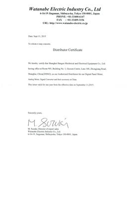2015年Watanabe工廠上海航歐中國區銷售Watanabe轉換器代理商經銷商